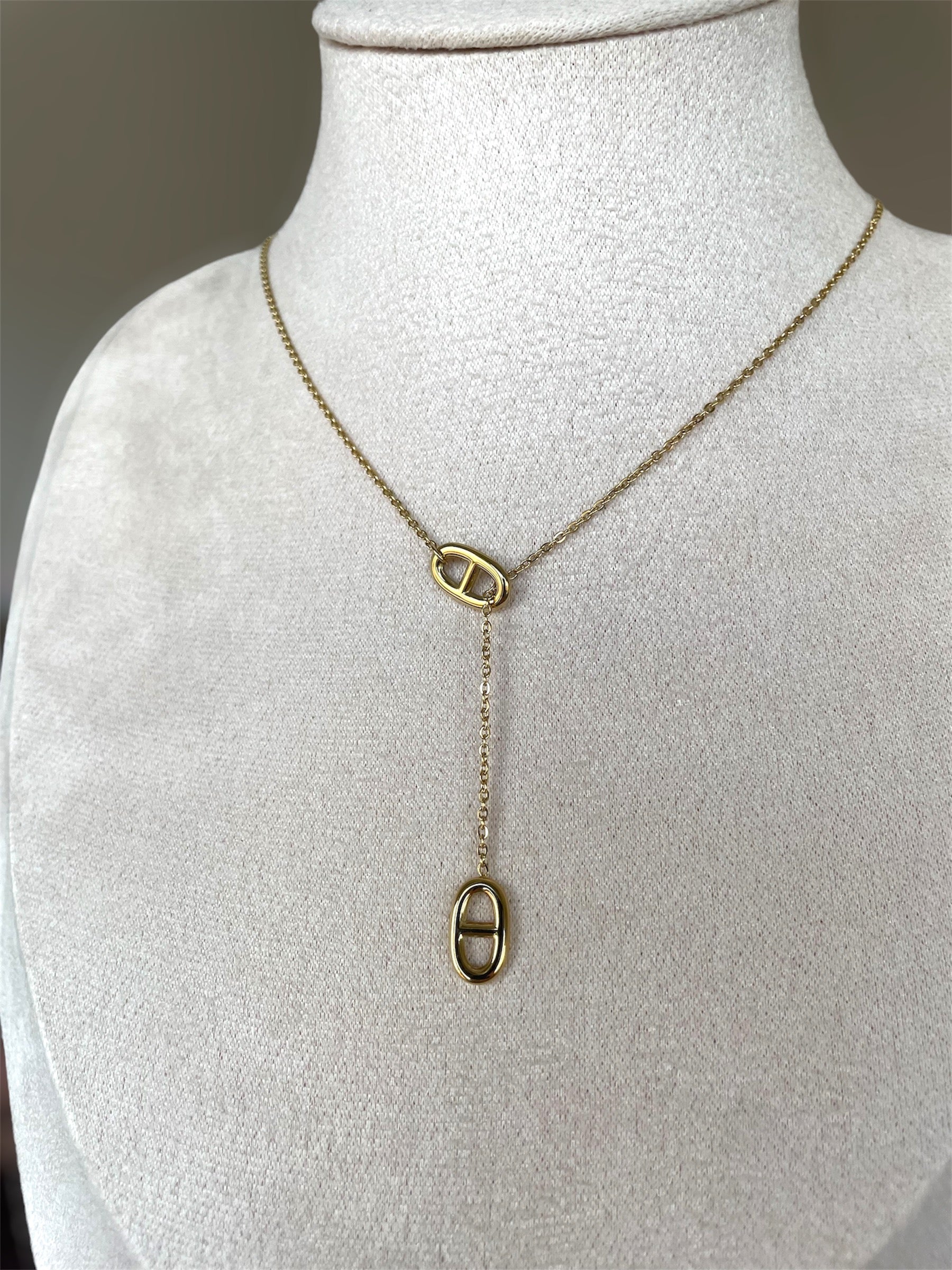 Collier à chaîne coulissante en acier inoxydable composé de 2 pendentifs ancre.