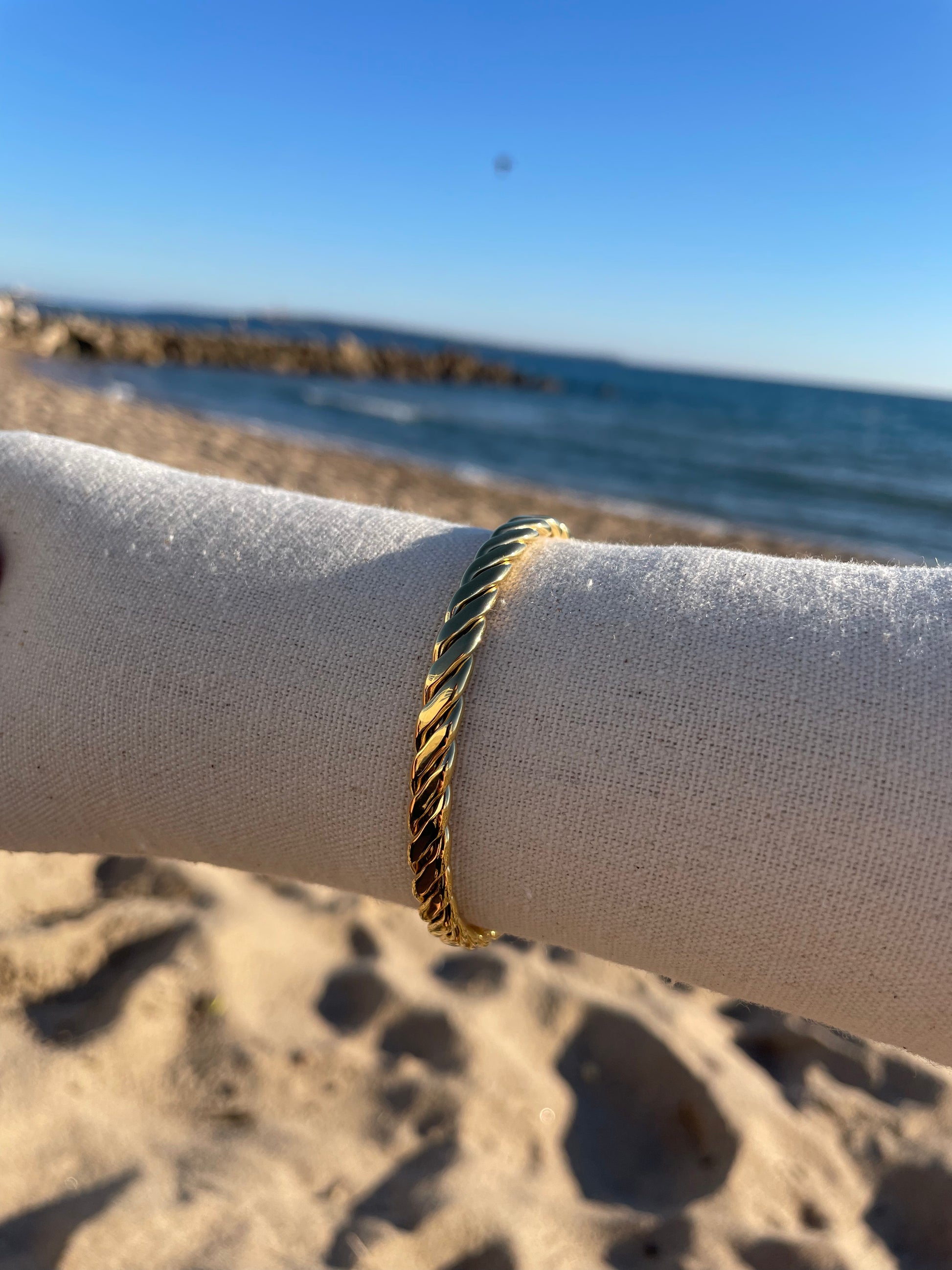 Jonc réglable torsadé en acier inoxydable