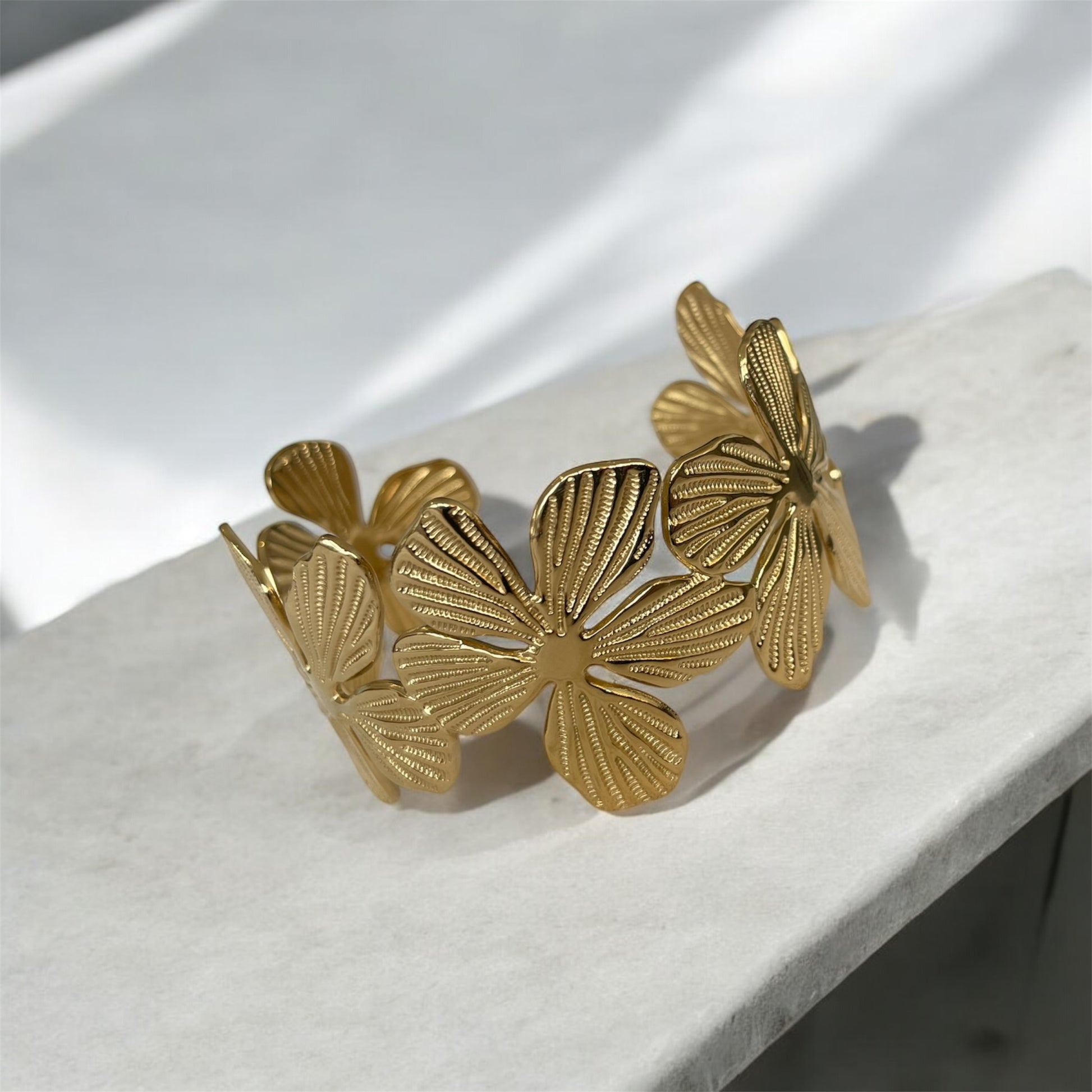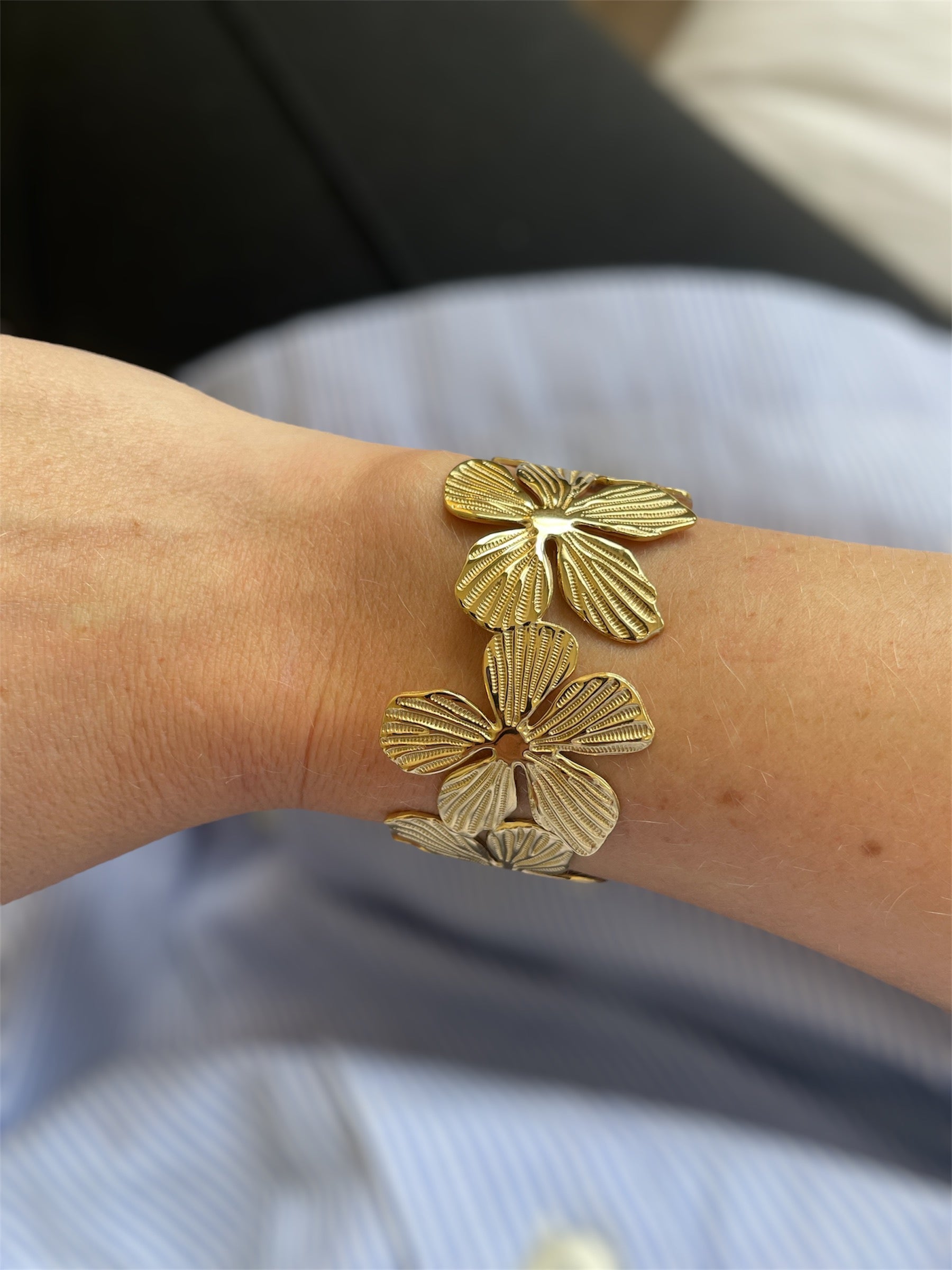 Jonc réglable en acier inoxydable, en forme de fleurs.